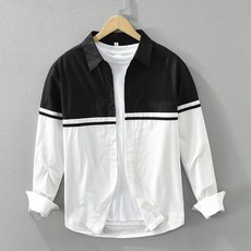 남성셔츠 봄 블랙 앤 화이트 배색 트렌드 긴팔 셔츠 순면 루즈핏 남방 sk1
