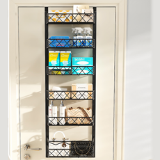 SAIVEINA 6단 욕실 거실 주방 수납용 무타공 철제 다용도 대용량 문걸이 수납선반 공간활용 도어 수납선반, 블랙, 1개