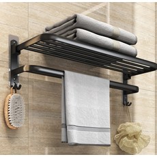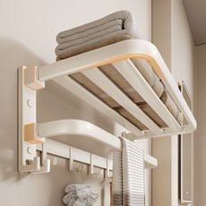 ZOZOFO 욕실타월걸이 옷걸이 접이식 욕실수납선반 2단타월걸이 후크선반, 크림 60cm 길이, 1개