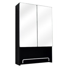 오픈 누드 거울 2도어 양문형 욕실 수납장, 블랙, 1개