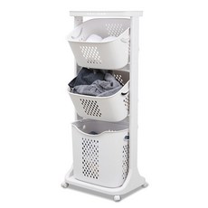 코멧 홈 와이어 햄퍼 트롤리 2단 빨래바구니, 화이트