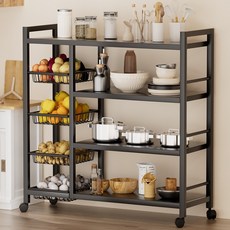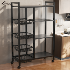 KATOOL 이동식 주방 전자렌지 선반 양념채소 다층 렌지대 수납 선반 다용도 수납장 800mm, 바구니4개, 블랙