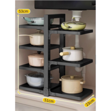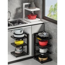 오토고 주방 용품 수납 프라이팬 후라이팬 냄비 접시 정리대 거치대, 4단, 1개, 블랙