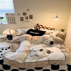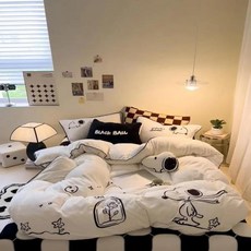스누피이불 침대이불커버세트 싱글 더블 체크무늬이불 이불커버교체 캐릭터 양면 사계절 멀리텍