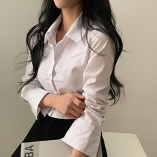 [니썸] [자체제작/숏 롱ver/S M] 여성 텐션 스판 슬림핏 핀턱 카라 크롭 셔츠/디토크롭셔츠2