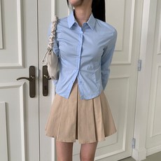 cammello 세미 크롭 카라 셔츠 남방 슬림핏 셔링 긴팔 크롭티