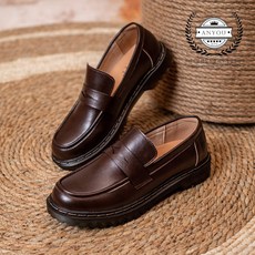 BLTER 여성 가죽 로퍼 발편한 슬립온 통굽 5CM 키높이 슬립온 여성 통굽 신발 여성 통굽 구두 여성 단화 6130