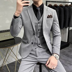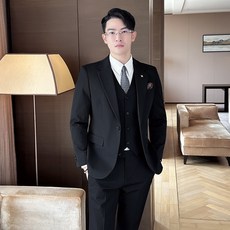 남성정장세트 결혼 정장 세트 슬림 빅 사이즈 솔리드 정장 세트 순면 세트 3종 세트