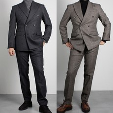 브랜드라인 가을 겨울 싱글 더블 헤링본 울 90% 세미 슬림핏 남성 정장 세트 수트