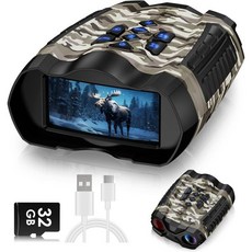 나이트 비전 고글 4K 쌍안경카메라 포함 9기어 10배 디지털 줌 4000mAh 배터리 3 HD 디스플레이 및 32GB TF 카드, Camouflage, 1개