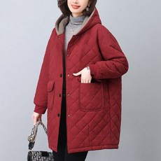 빅사이즈 여성 후드 누빔 패딩 자켓 데일리 도툼한 웰론 패딩 점퍼 겨울 하프기장 코트 아우터 중년여성40 50대