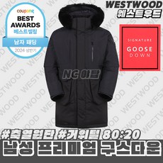 [웨스트우드] (이월상품 한정수량) 초특가 남성 프리미엄 구스다운 / 거위털 80:20 / 폭스퍼 후드탈부착 / 고보온성 축열원단 / 남자 야상 패딩