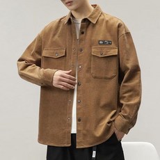 봄가을 남성용 루즈핏 카라넥 코듀로이 긴팔 라지 셔츠 데일리 캐주얼 골덴 셔츠