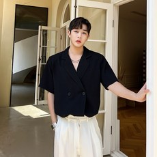 남자 반팔 더블 버튼 얇은 여름 정장 슈트 자켓 세미 캐주얼 자켓
