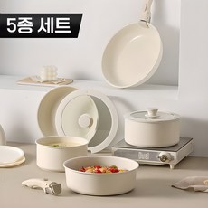 쿠킨 인덕션 IH 그린우드 후라이팬 + 냄비 세트, 아이보리, 5종, 1세트