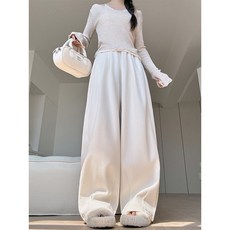 더보느 여성용 요거트 니트 와이드 밴딩 팬츠 1+1