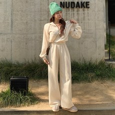 떳다그녀 마이어 반집업 니트 and 와이드 팬츠 SET