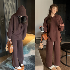 Asure 여성 투피스 니트 세트 원마일 웨어 후드+바지