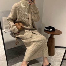 UPPERCUT 여성 루즈핏 니트 가디건 스커트 상하 세트