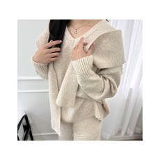 여성 니트 숄 쓰리피스 3세트 셋업 [상의+하의+숄 세트]