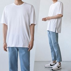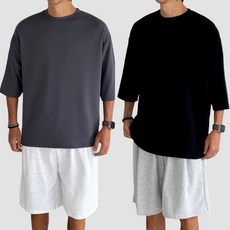 데이즈 1+1 남녀공용 특양면 오버핏 스판 여름 7부 반팔 티셔츠
