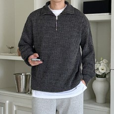 데이즈 남녀공용 빅사이즈 골지 니트 반집업 오버핏 맨투맨