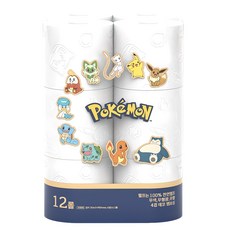 어린숨 포켓몬 천연펄프 4겹 데코 화장지, 1세트, 12롤, 30m