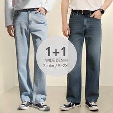 [1+1] 2장 데일리 2컬러 남성 사계절 프리미엄 세미 와이드 청바지 데님 팬츠 빅사이즈