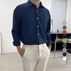 Asure 남자 봄가을 셔츠 순면 긴팔 남방 루즈핏 상의