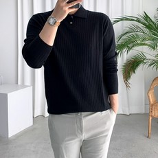 룩플레인 고급스러운 골지 비스코스 긴팔 니트 카라 티셔츠 7color