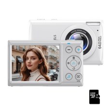RUNHome 빈티지 디지털 카메라 6400W 셀카 휴대용 여행용 인생+64G메모리카드, 실버
