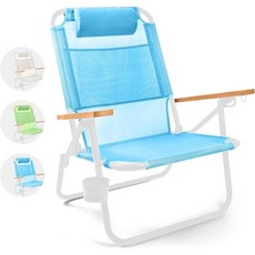 Water Buffalo 의자 휴대용 사무용 캠핑 워터 버팔로 비치 체어 - 성인용 프리미엄 백팩 스트랩이 있는 접이식 및 리클라이닝 본다이, Swim Cap Blue, 1개