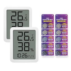 샤오미 대화면 시계 온습도계 3세대 2개 + 다싸다 CR전지 10알, 1세트, 화이트