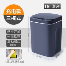 2384 자동센서 쓰레기통 스마트 휴지통 침실 거실 주방 욕실, 다크 그레이 4세대 16L 충전