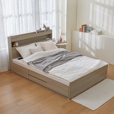 바로방가구 샤인 LED 수납형 서랍형 슈퍼싱글 퀸 침대 프레임 ss q, 슈퍼싱글(SS)/3단서랍형(매트리스제외), 그레이워시