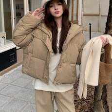 캐주얼 후드 누빔 여성 숏 패딩 후디 크롭 점퍼 겨울 아우터