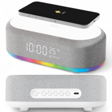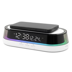 SMABAT 휴대폰 무선 충전 블루투스 스피커 LED 무드등 탁상 시계 디스플레이 시계 알람, 화이트