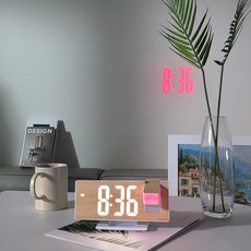 잠 잘자는 LED 프로젝션 탁상 알람 인테리어 숙면 시계, 우드