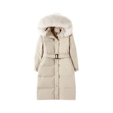 [레티고] 퍼 트리밍 덕다운 벨트 롱 패딩 점퍼