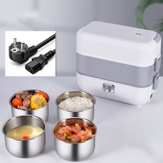 DS 스텐 가열 전기 보온 도시락통 휴대식 직장인 대용량 런치박스 캠핑용 출장용, 1세트, 그레이 2단