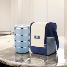 DS 304 스테인리스 보온도시락통 전자레인지 적용 2단 3단 4단 휴대용가방 포함, 4단 베이지, 1개
