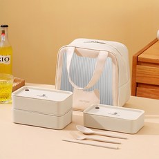 프리라벨 전자레인지 스텐 도시락통 세트, 1세트, 베이지2단 + 스텐수저 + 보온가방