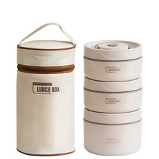 DS 304 스테인리스 보온도시락통 전자레인지 적용 2단 3단 4단 휴대용가방 포함, 3단 베이지, 1개