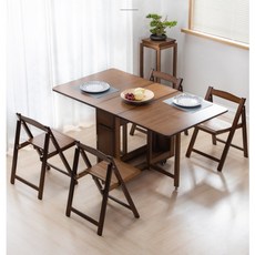 접이식 식탁 4인 6인 대나무 식탁세트 접이식상 확장형테이블, 브라운 식탁+의자 4개
