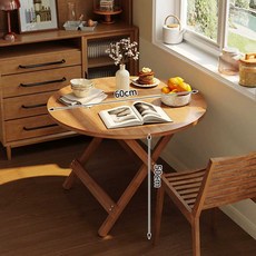 대나무 원목 식탁 세트 접이식 라운드 벤치 원형 사각, 60CM 원형 테이블