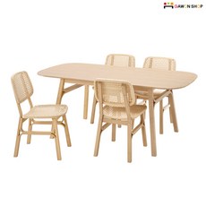 이케아 VOXLOV 둥근 모서리의 대나무 식탁세트/4인용식탁, 테이블1개+의자4개, 수량:테이블1개+의자4개