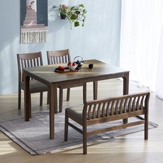 베스트리빙 바로스 제시 고무나무 원목 4인용(1200) 식탁세트/ 의자2개+등받이벤치포함 방문설치, 월넛
