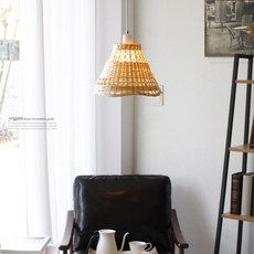 살림일기 대나무 라탄 인테리어 전등갓 조명커버 라운드 타입