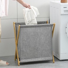 런더리백 빨래 바구니 대나무 런드리백 접이식 수납 정리, 그레이