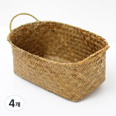 내일의공간 손잡이 원형 라탄 과일 바구니, 네츄럴, 4개
